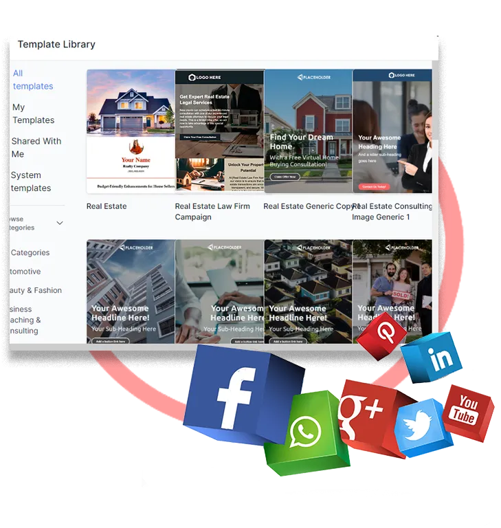 Instantly create eye-catching posts for Instagram, TikTok, Facebook, and more. Stand out in the digital crowd and attract buyers with compelling visuals and messages.